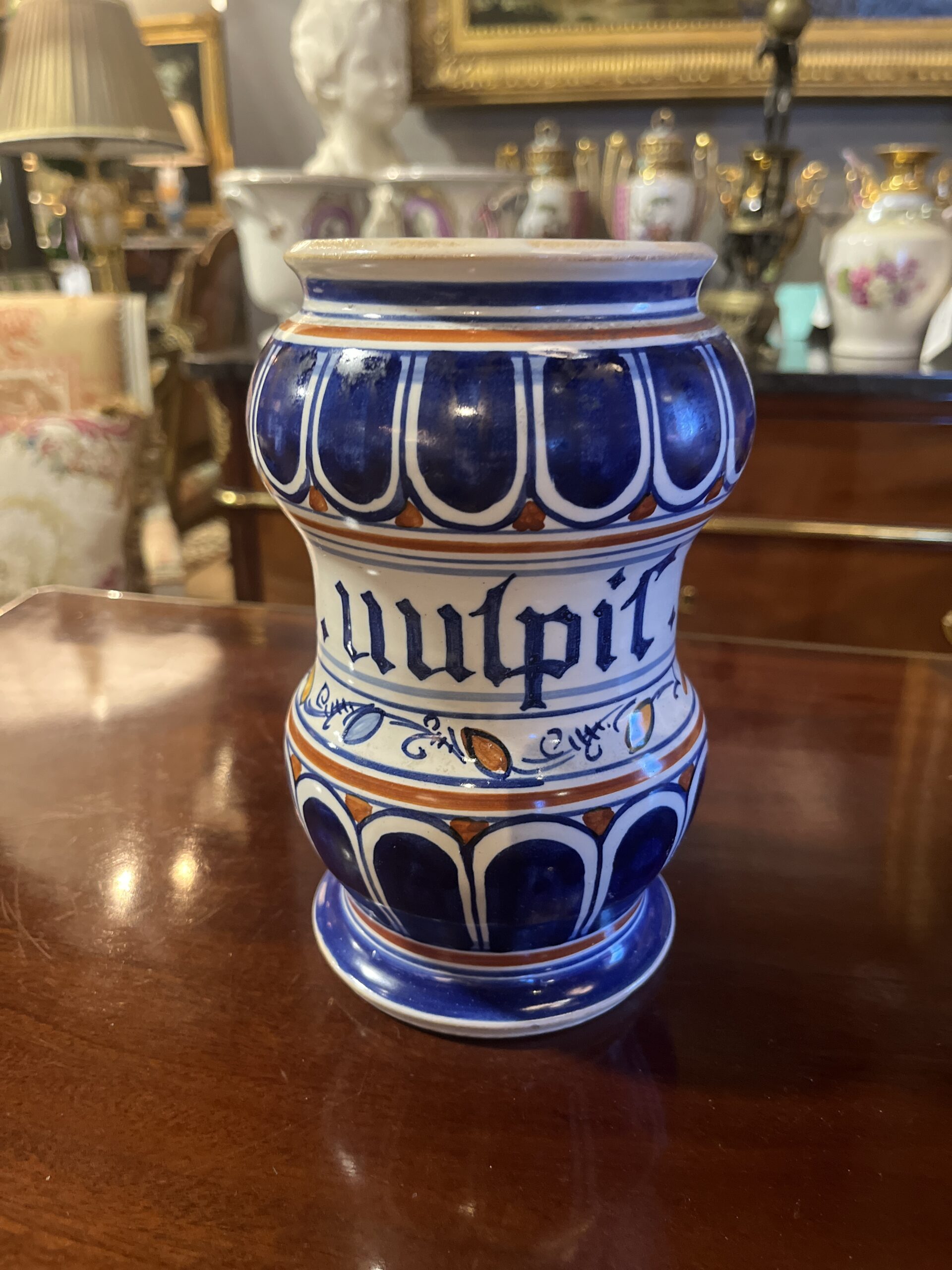 19th Century French Ceramic Pharmacy Jar. Beautiful piece purchased in France. Age appropriate wear, see detailed photos or message us with questions.