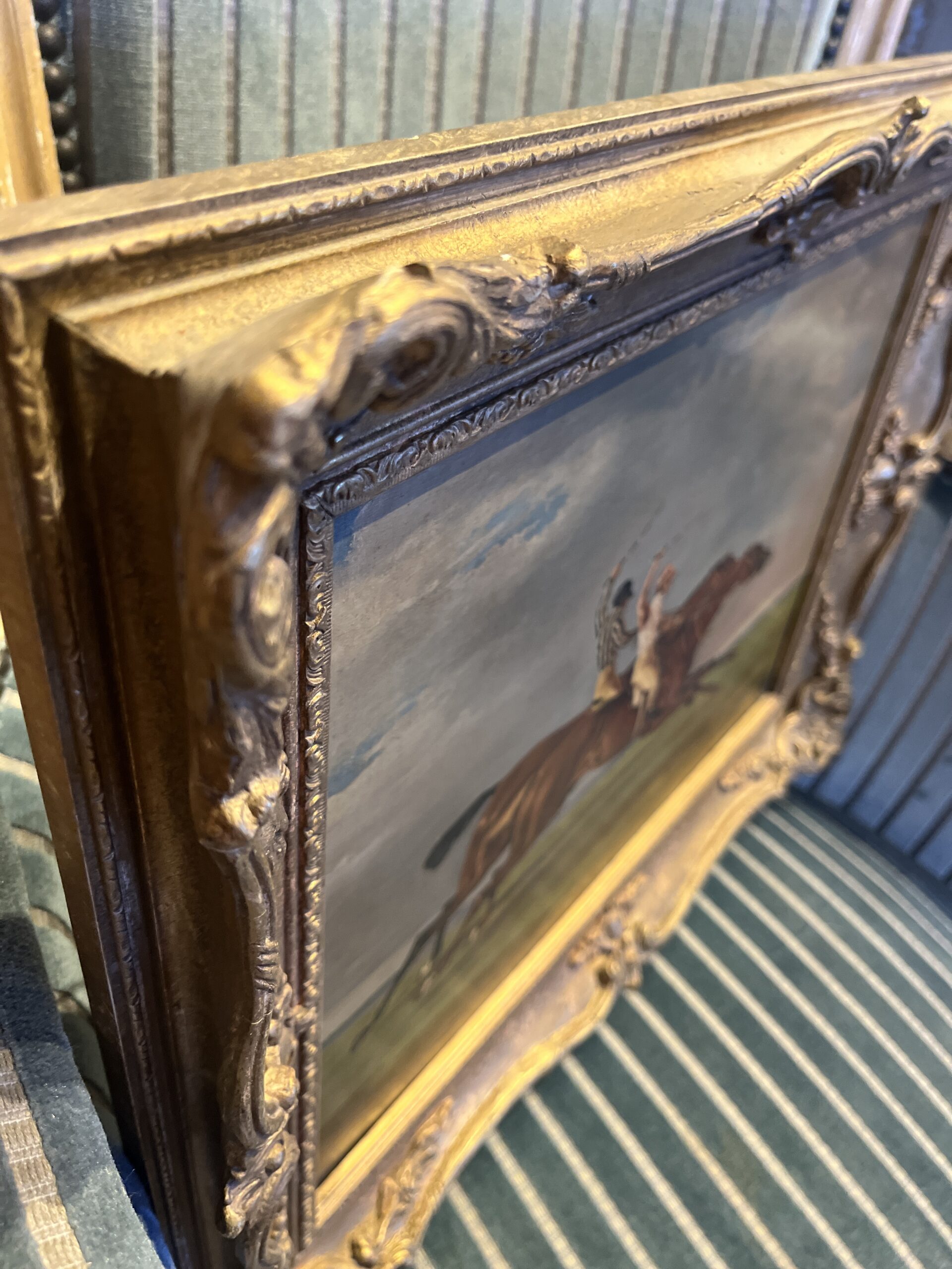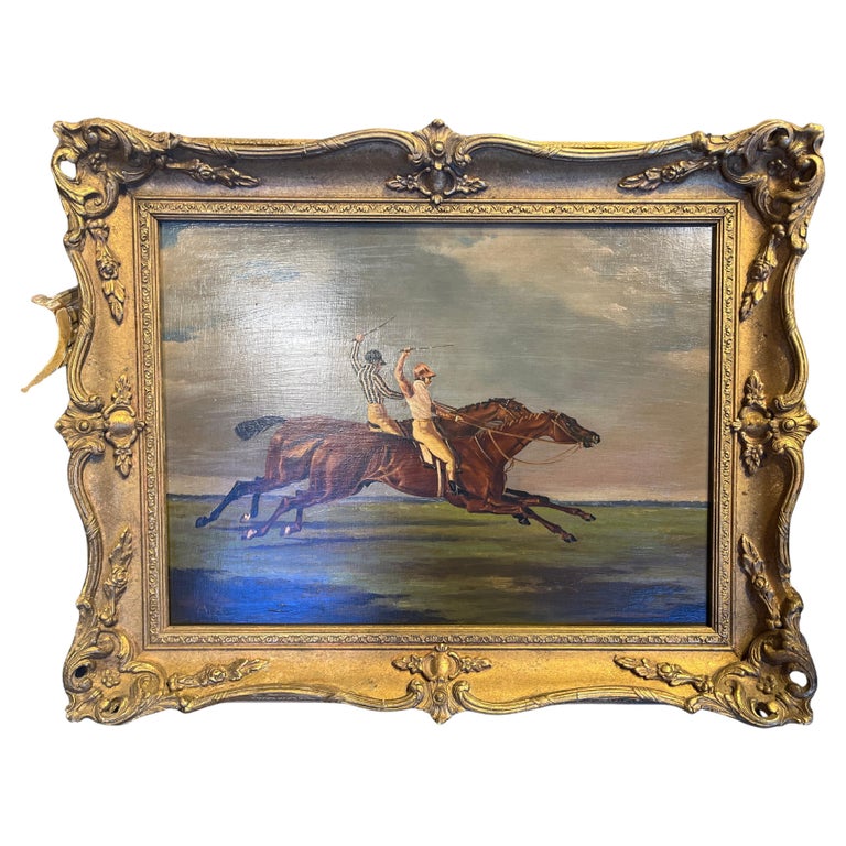 19th Century Horse Racing Oil on Mahogany by Benjamin Herring. Beautiful painting purchased in France. Age appropriate wear, see detailed photos or message us with questions.