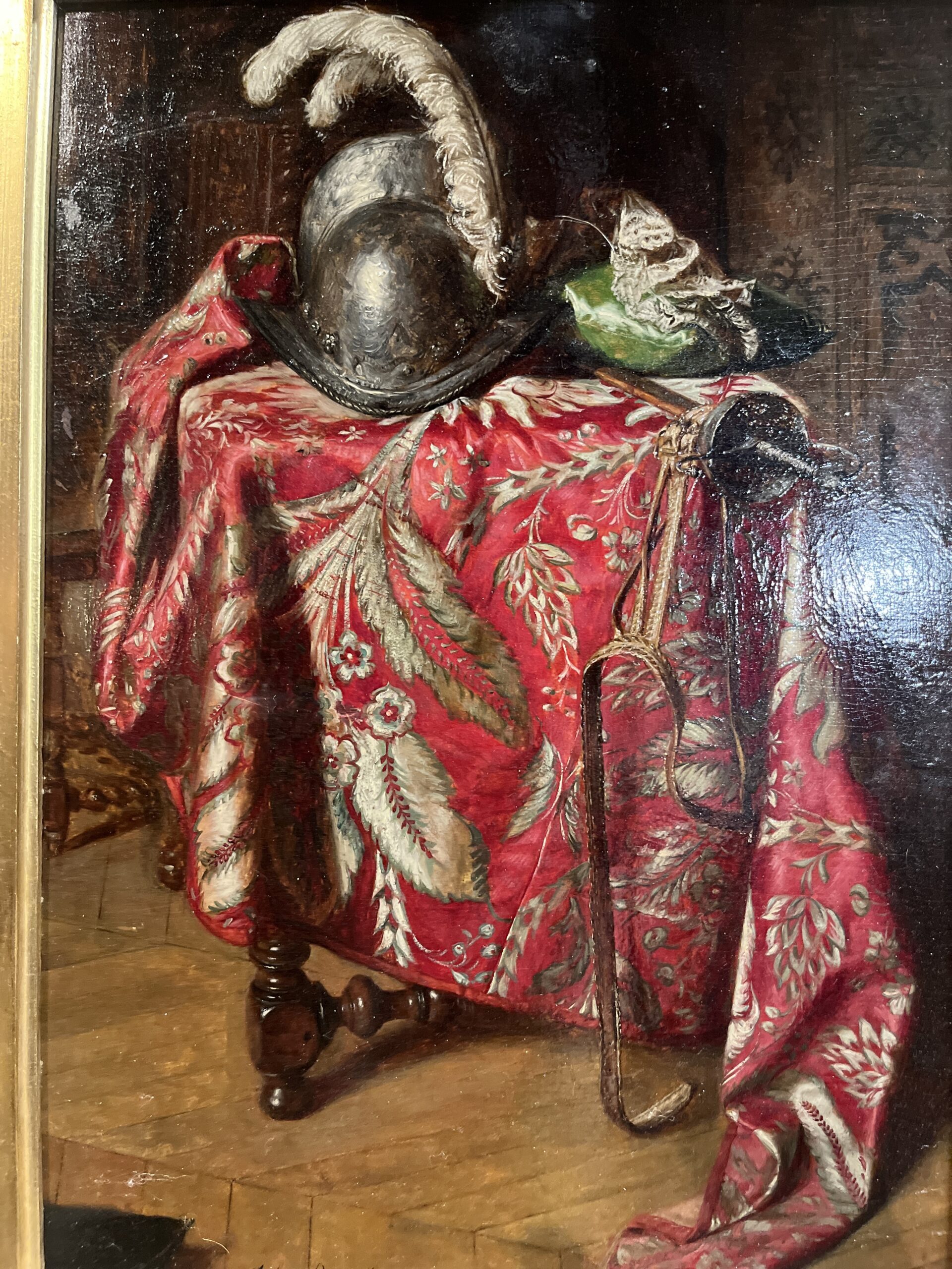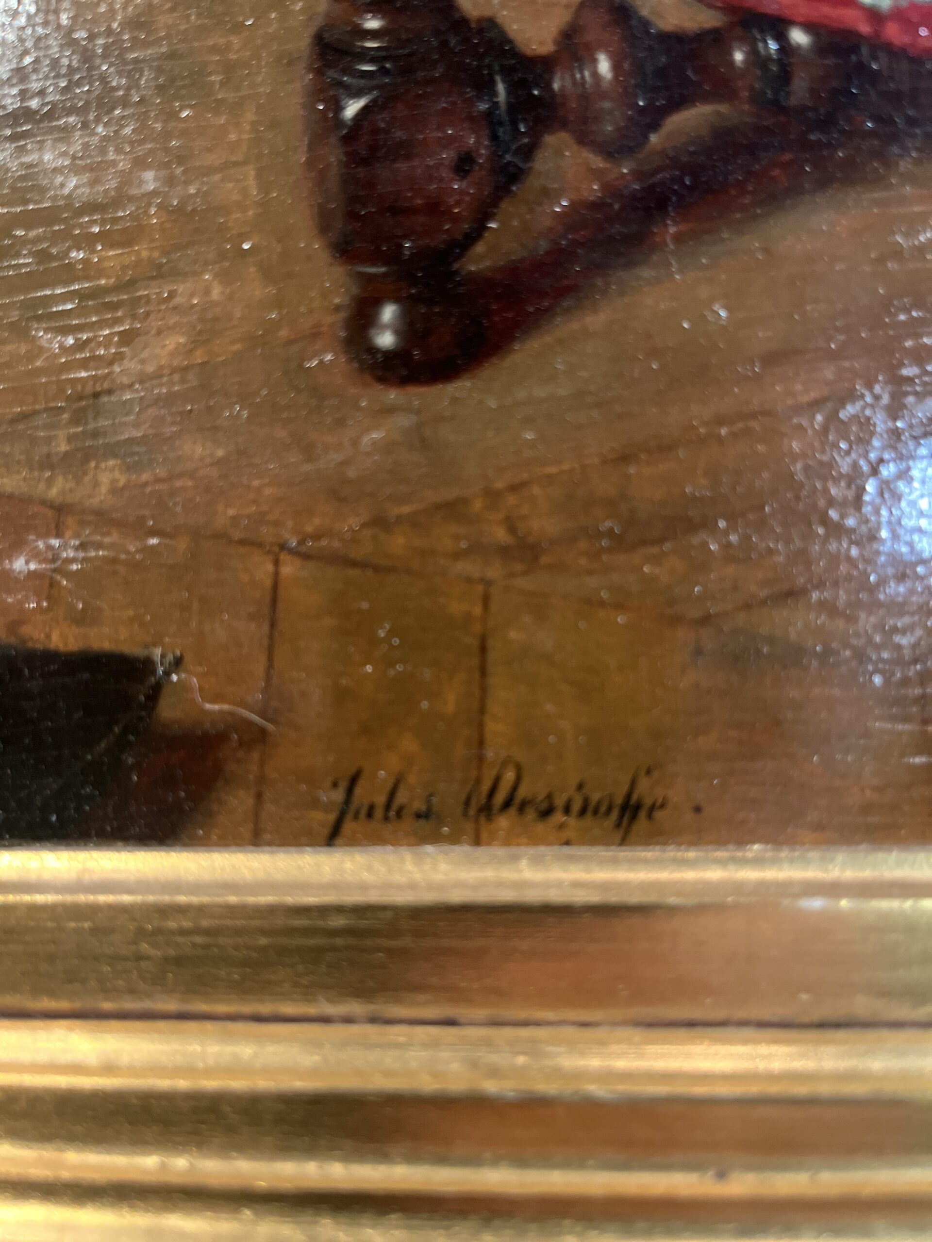19th Century (Late) Painting Officer’s Helmet by Jules Desgoffe 1864-1905. Beautiful painting purchased in France. Age appropriate wear, see detailed photos or message us with questions.
