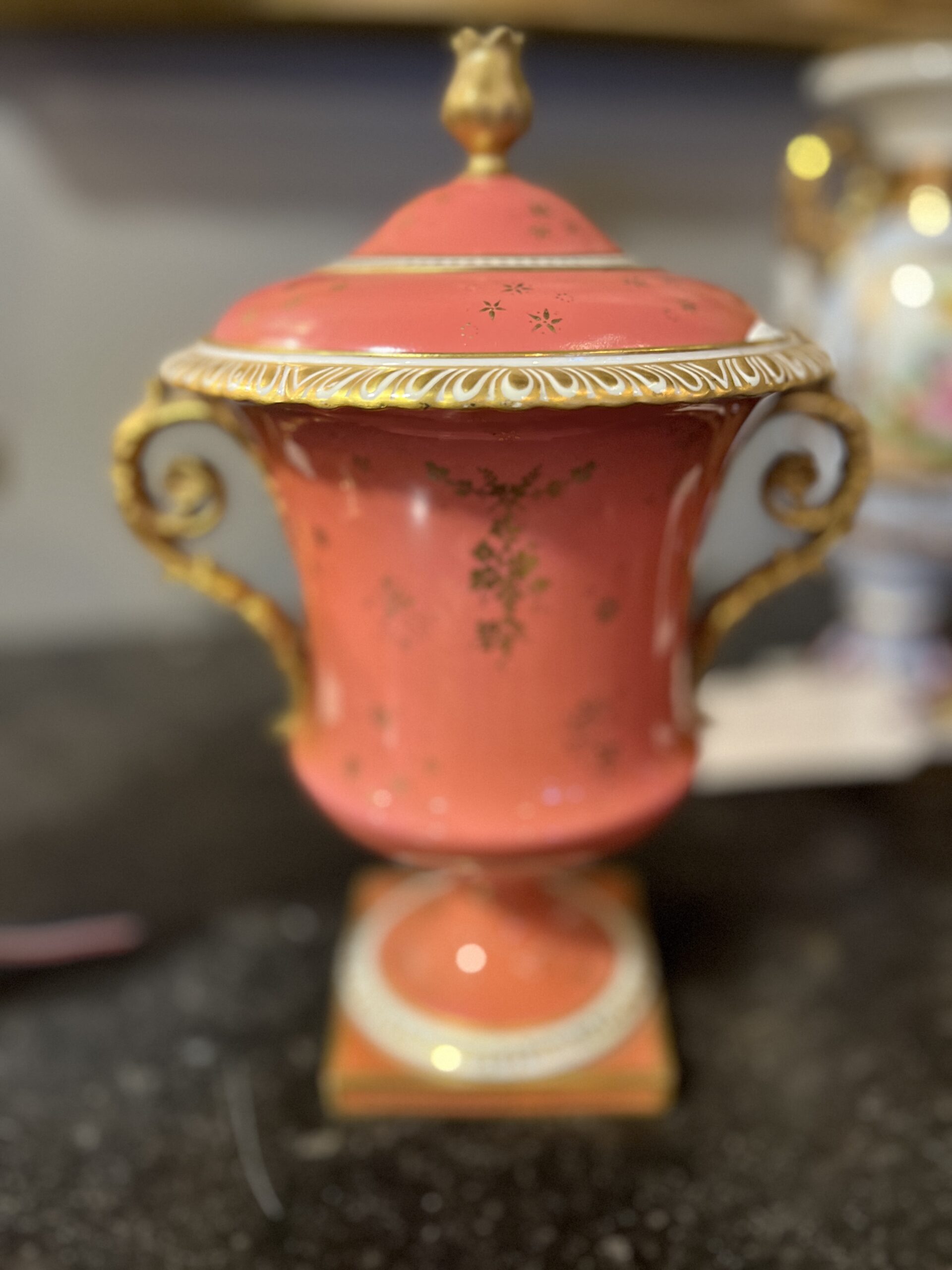 20th Century (early) Pair English Royal Crown Derby Covered Urns – Tiffany & Company. Beautiful pair purchased in France. Age appropriate wear, see detailed photos or message us with questions.