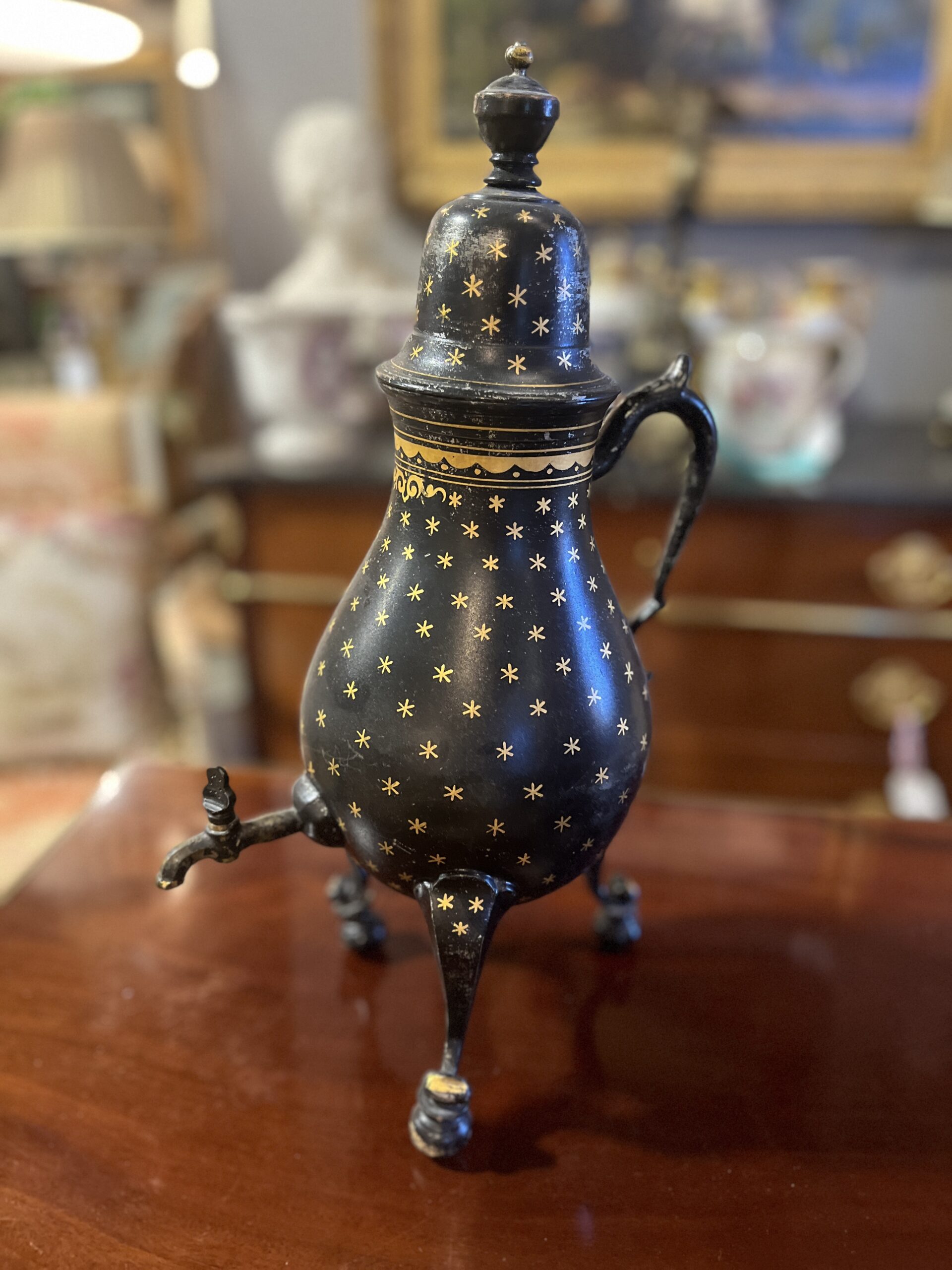 Vintage Dutch Black & Gold Tole Tea or Coffee Urn. Beautiful piece purchased in France. Age appropriate wear, see detailed photos or message us with questions.